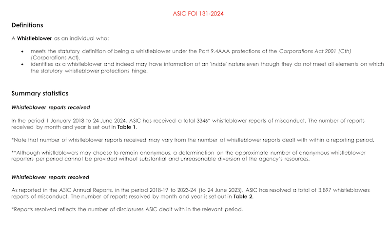 The number of whistleblower reports received by the corporate regulator ASIC is down 44.3% for first six months this year. Could it have something to do with the treatment of whistleblowers and the failure of governments to fix the whistleblower laws?